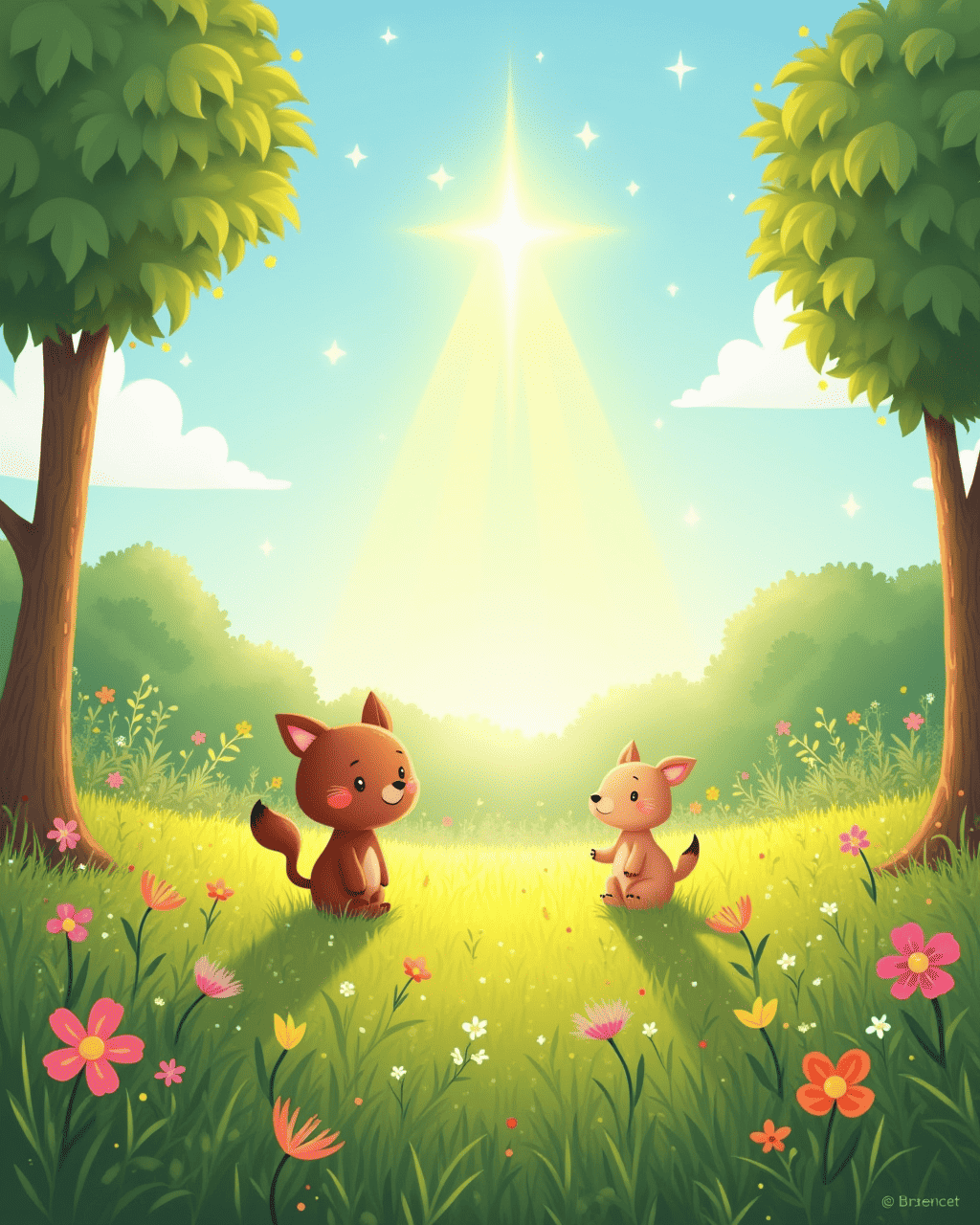 Once upon a bright morning, a Tiny Twinkle named Tilly shimmered at the edge of a peaceful meadow. She longed to see the big sky and the distant constellations. Every day she twirled, hoping someone would notice her tiny glow. Nearby animals would pause to stare at the gentle sparkle in the grass. Their warm smiles filled Tilly with confidence that she could journey beyond the meadow.