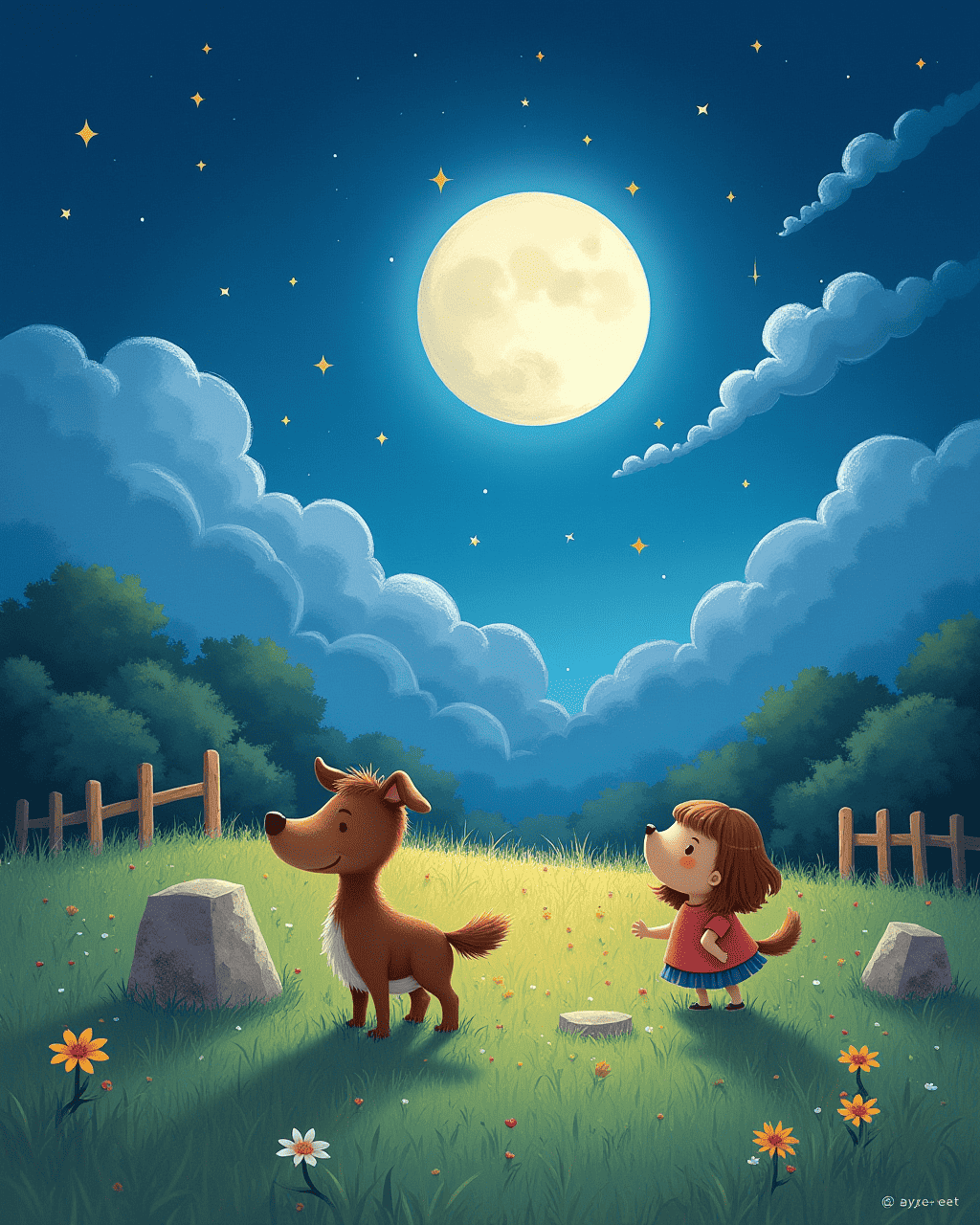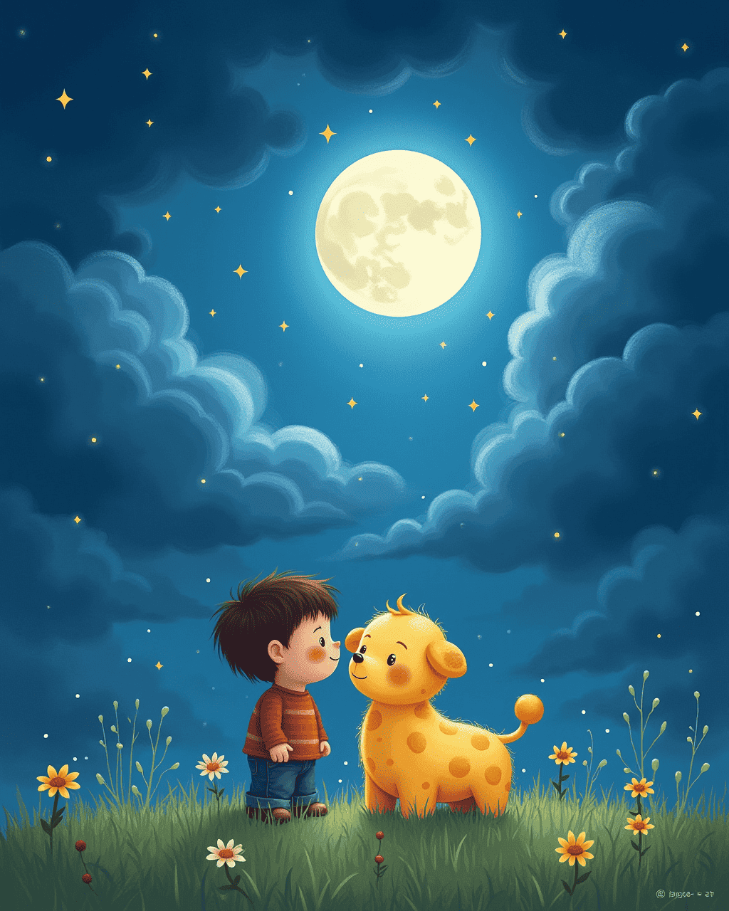 Night fell, and the clouds gathered heavily. Twister felt nervous, but Luna steadied him. Their friendship became a shield against the thunder. Twister whispered stories of sunny days to calm Luna’s heart. The storm passed, leaving a rainbow over the meadow.