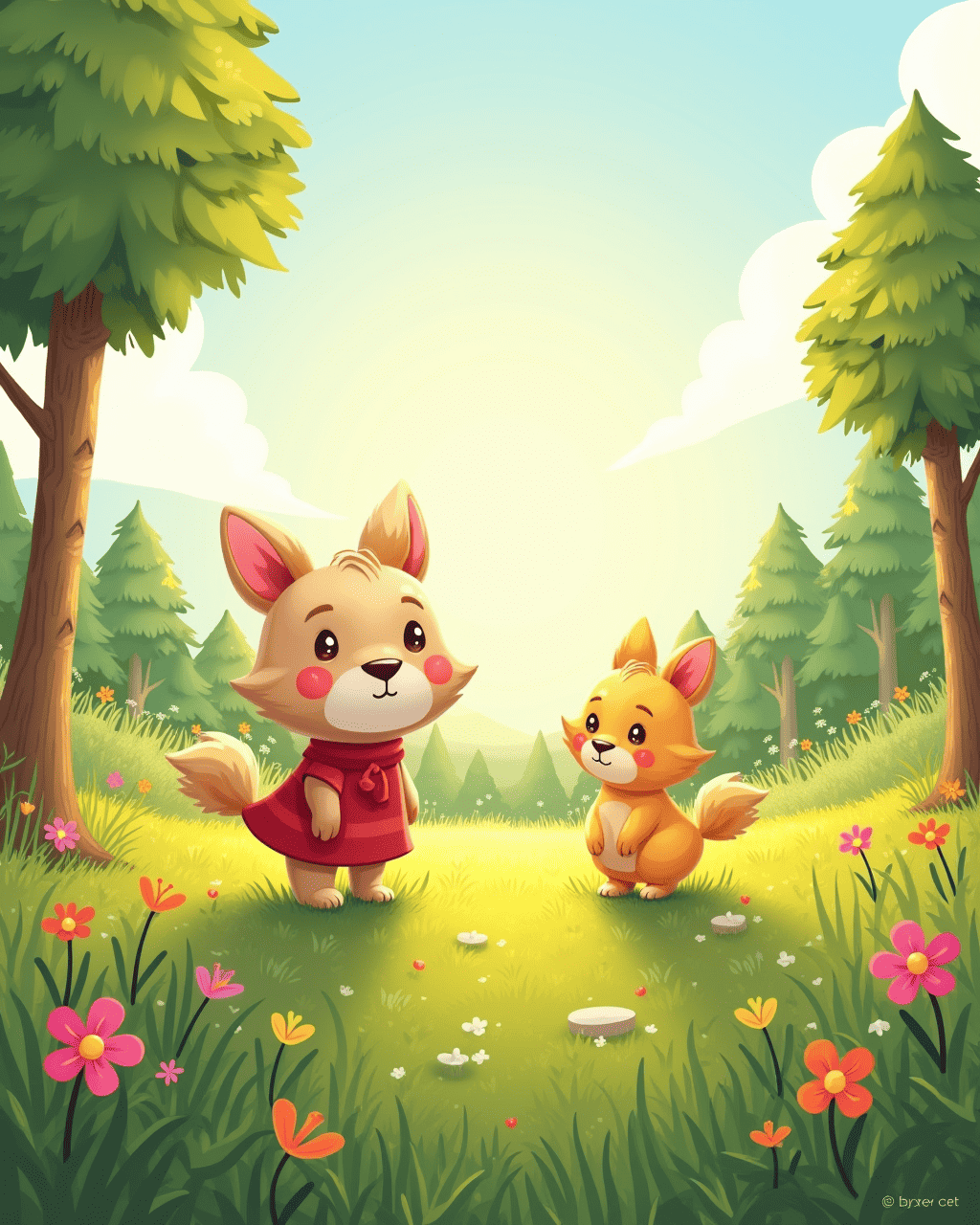 On the edge of the forest, Twister bumped into Luna, the shy fox. Luna looked at Twister and asked, "What brings you here?" Twister answered, "I’m exploring the world, one breeze at a time." Luna was curious and decided to tag along. Together they chased butterflies and giggled.