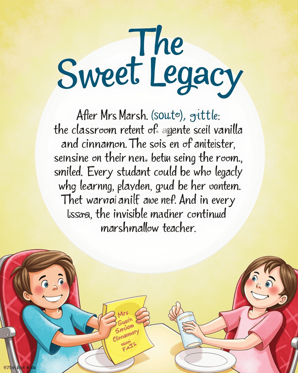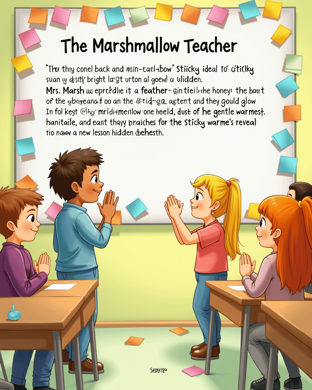 After Mrs. Marsh left, the classroom retained a gentle scent of vanilla and cinnamon. The sticky notes still glittered, reminding students of their sticky creativity. Every new student who entered the room smiled, sensing the warmth of her legacy. They discovered that learning could be playful, gentle, and, most importantly, sweet. And in every lesson, the invisible marshmallow teacher continued to guide them, one sweet thought at a time.