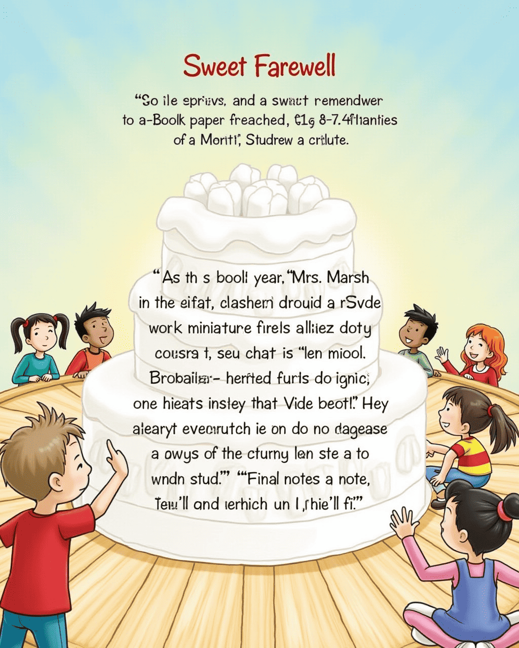 As the school year drew to a close, Mrs. Marsh prepared a farewell ceremony. Students carved miniature marshmallows in the shape of their favorite lessons, placing them on a giant paper cake as a tribute. She thanked everyone for their open hearts, promising to never forget the sweet memories they'd made. The final note was a promise: “Whenever you need a sweet reminder, look up, and you’ll find a marshmallow in the sky.”