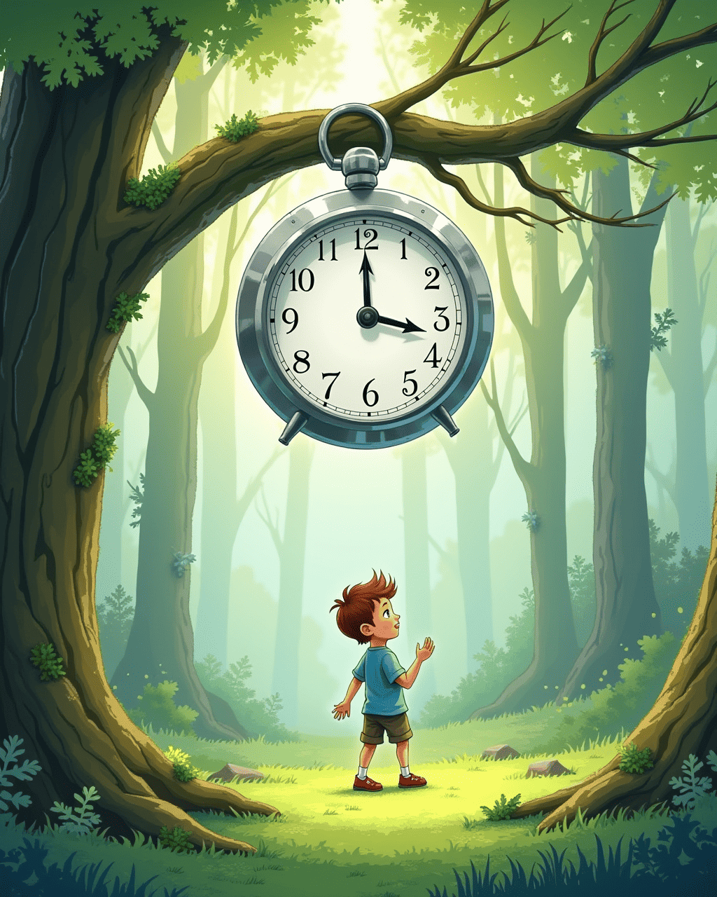 In the forest, they discovered a silver clock hanging from a mossy tree trunk. The clock ticked silently, yet its hands seemed to glow when the sunlight hit them. Maya whispered, "Perhaps it keeps time in a different way," and Leo nodded eagerly. The two of them pressed their palms to the cool metal and felt a faint pulse emanating from its core. From that moment, the forest itself seemed to hum with hidden stories.