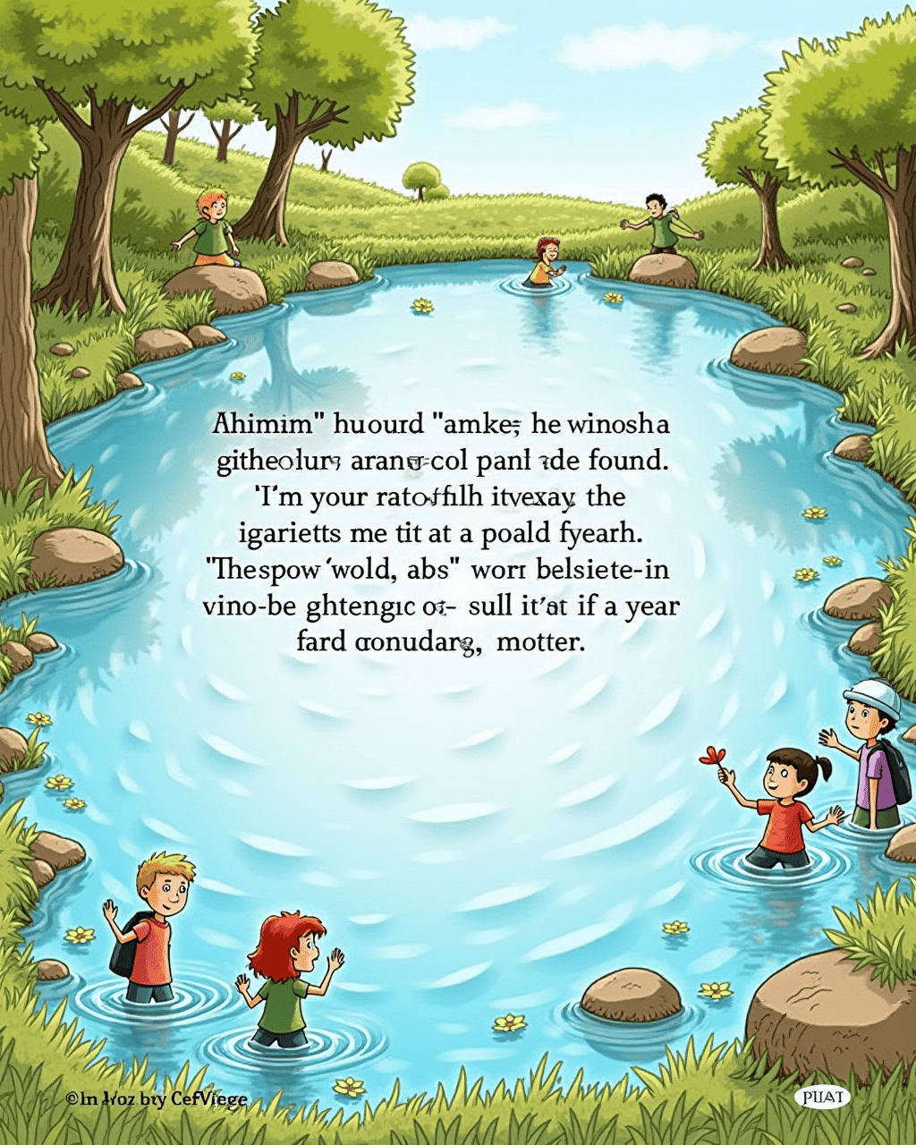 Guided by Gigi, the children reached a crystal‑clear pond that glimmered like a mirror. When they peered into its depths, they saw reflections of the sky, forest, and a long‑gone festival that seemed to echo for years. The pond whispered, "Time is a stream—catch it and see how wide it can flow." Maya dipped her hand in and felt lightness burst from her fingertips, as if a year could slip through one hour.