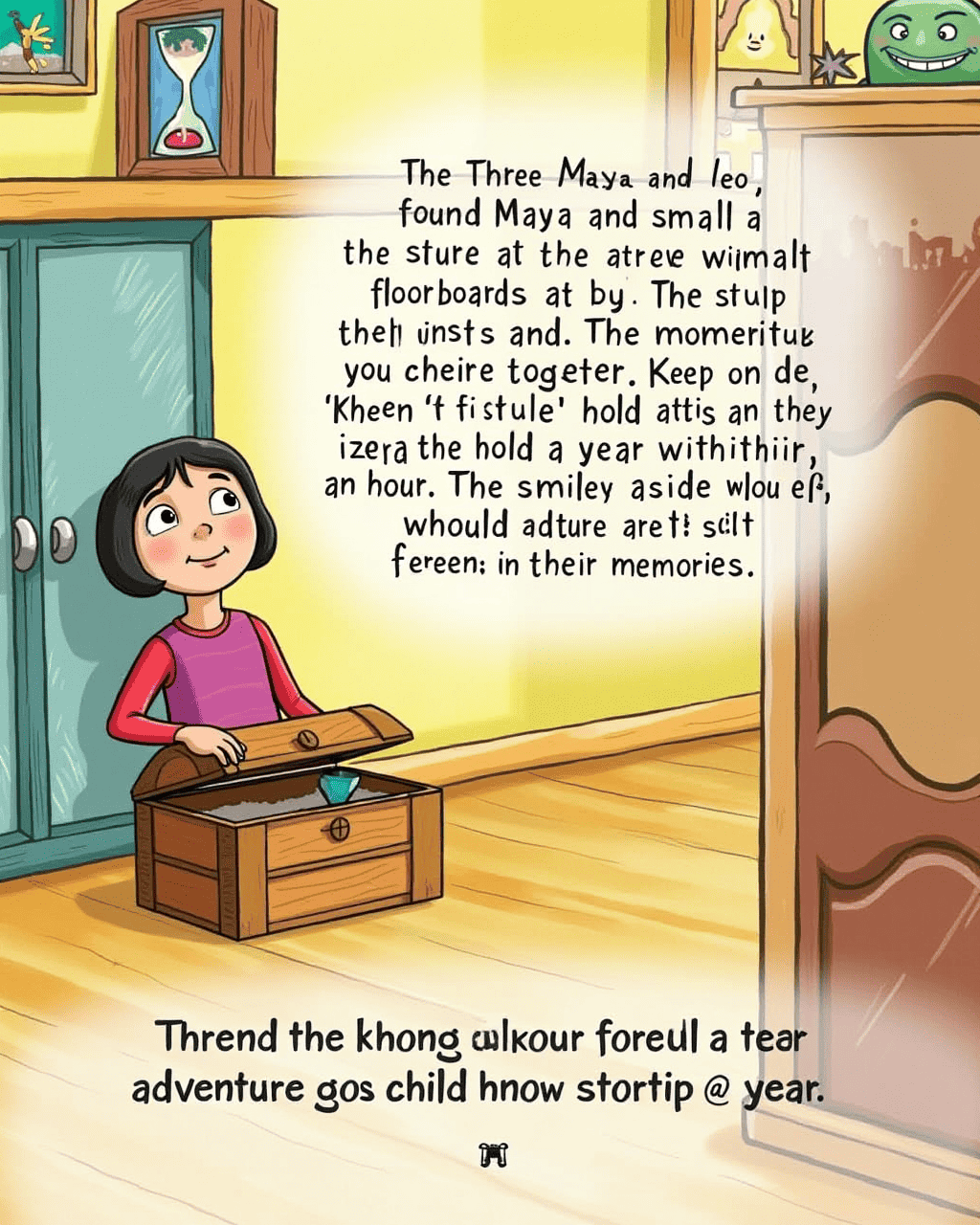 Back home, Maya and Leo found a small wooden chest at the bottom of the attic's floorboards. Inside, the chest held a tiny hourglass and a note: "The true treasure is the moments you cherish together. Keep this, and you hold a year within an hour." The children smiled, knowing that their adventure would last forever in their memories.