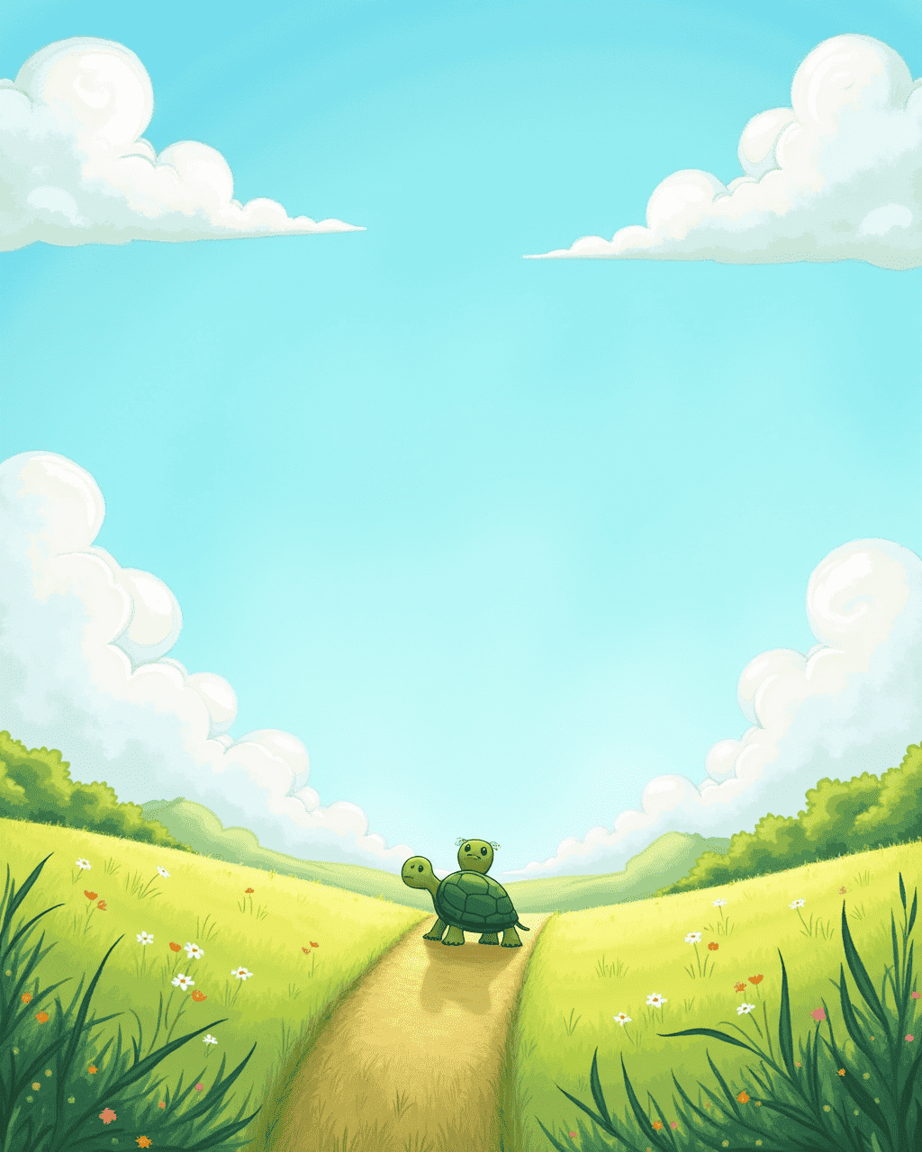 In a sun‑shining valley, a curious turtle named Tilly dreamed of touching the clouds. She watched fluffy white clouds drift lazily above. Tilly imagined herself racing ahead, turning her shell bright as the sunrise. The wind whispered that storms were faster than any shell could travel. Undeterred, Tilly decided to try.