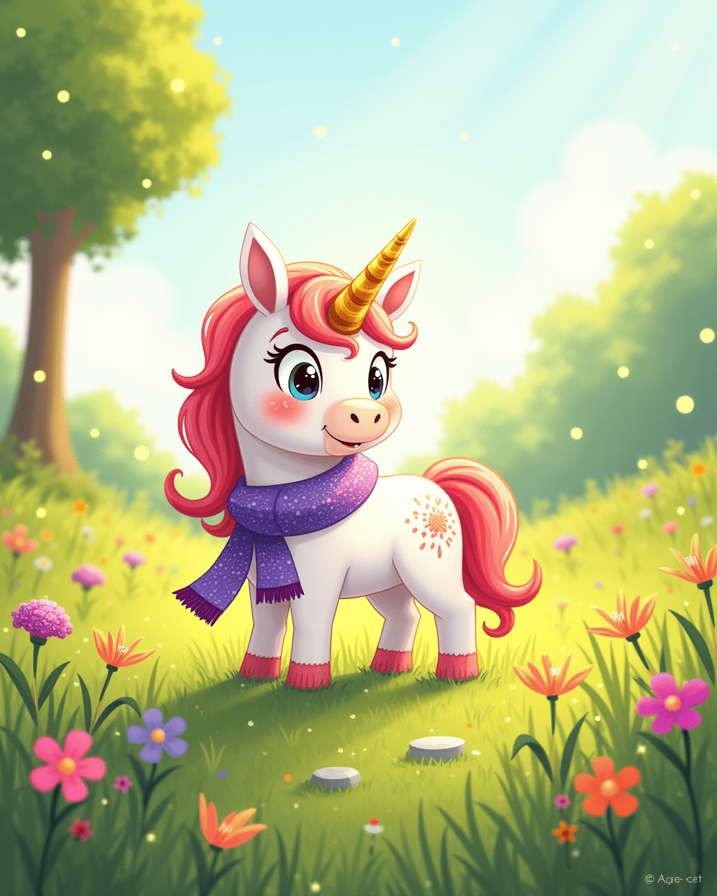 That night, Glimmer dreamed of a land where everything sparkled without hurting her. She imagined clouds made of stardust that brushed her mane. She felt calm and loved the sparkle of a sunrise without any sneezes. In the dream she found a friend who understood her allergies. She made a promise to protect herself while sharing joy.