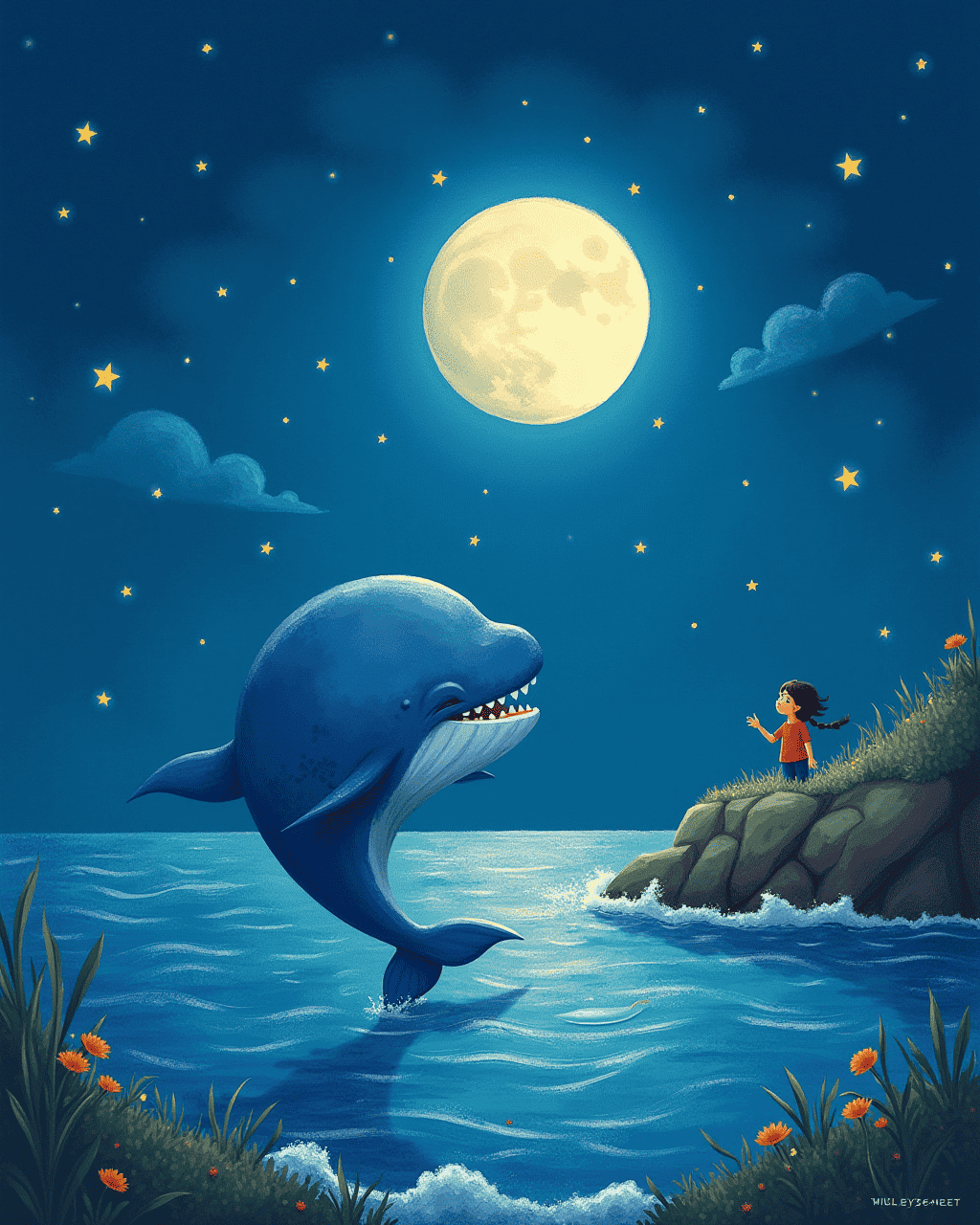 When the moonlight drifted over the waves, a curious whale named Waver noticed a distant hum. The sound was faint, like a lullaby carried by the tide. Waver swam closer, fluting through the water to trace the source. He discovered an ancient shell that sang of old times. The whale felt a warmth in his heart, as if the shell remembered him.