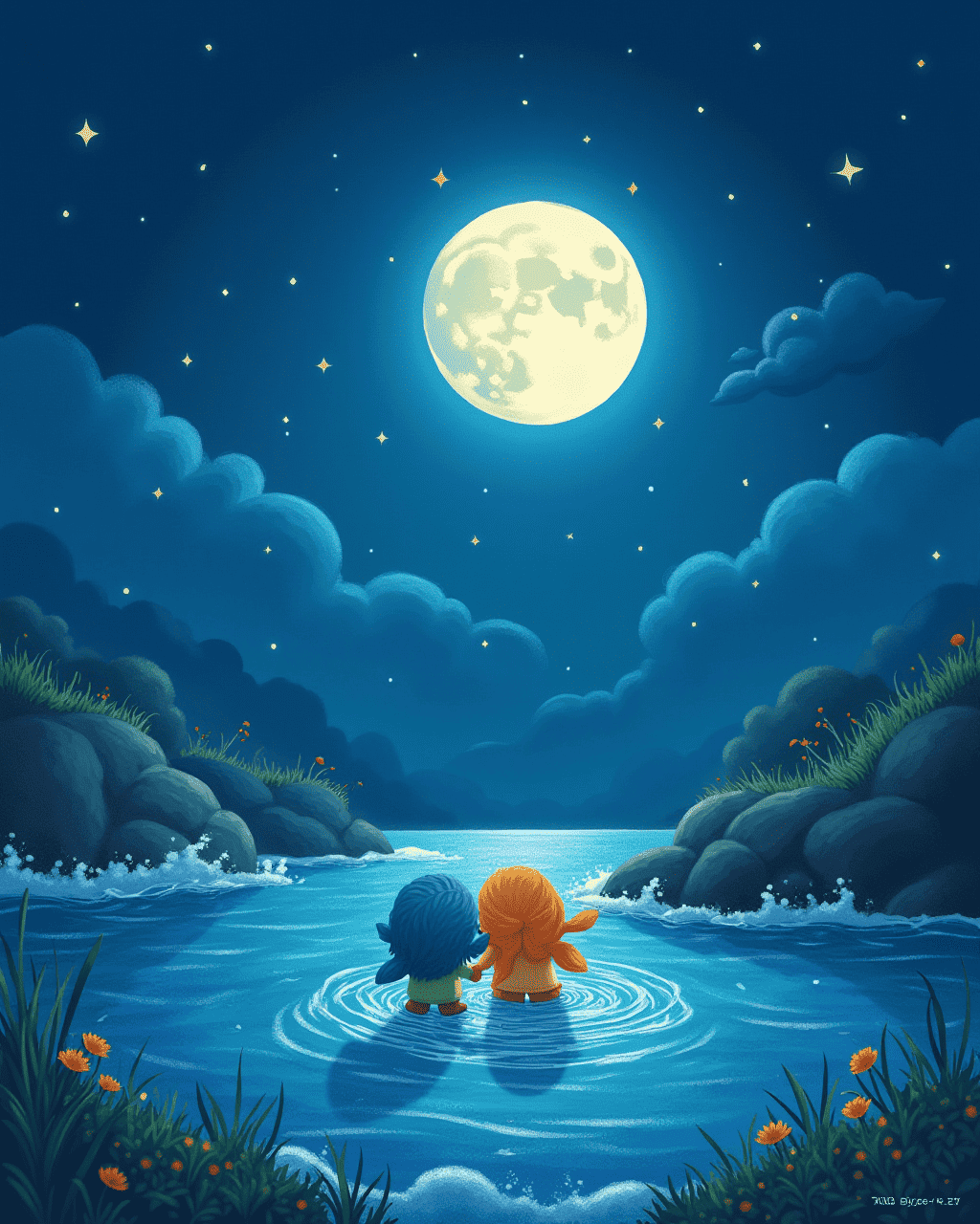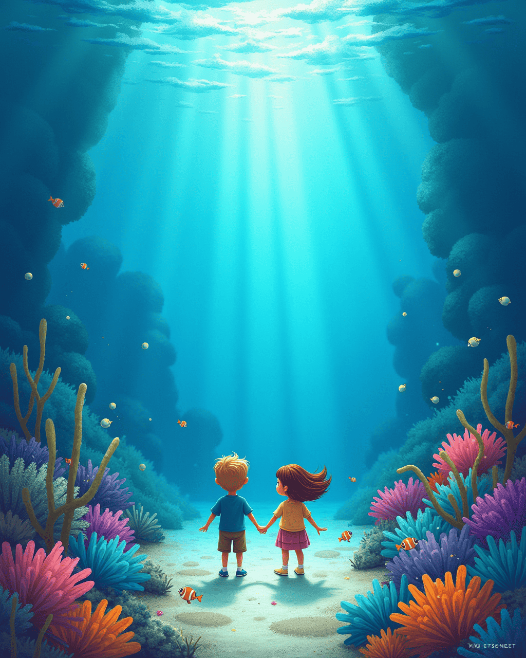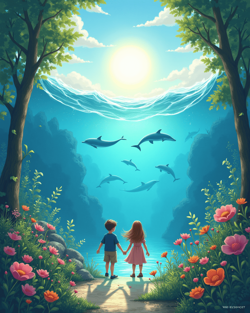 Suddenly, a gentle hum from the depths rose up, and the waves formed a glittering bridge. The bridge led to a garden of lights where dolphins leapt like silver fire. Lily’s voice was carried by the tide, singing a song of courage and hope. The entire sea seemed to smile at their bright spirits, showing that even the hidden water can glow if you dare to listen.
