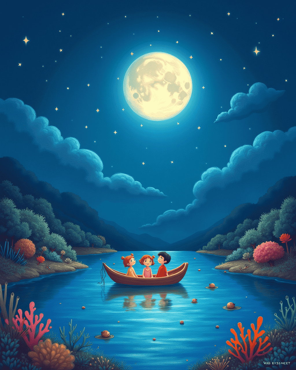 As night fell, Lily, Finn, and Tessa floated back to their coral home. They carried in their hearts gentle whispers that would forever keep the world bright. Every time children of the sea ask for stories, the whispering water will tell them a new song. The story has been passed on from one wave to another, a timeless lullaby to all who dare to explore.