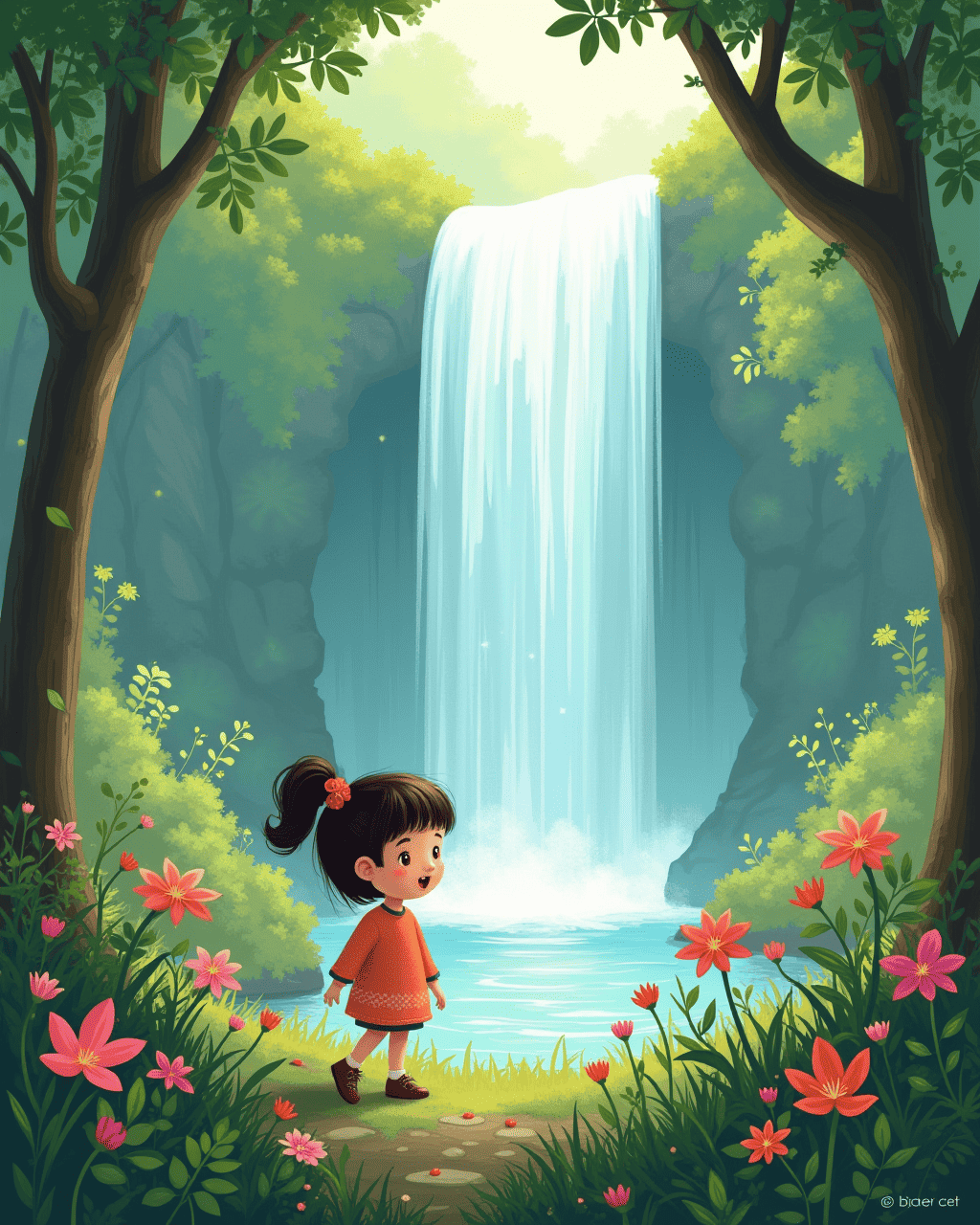 Lily was about to leave when a bright sparrow sang, “I hear the waterfall too.” The sparrow joined Lily. Together they listened to the waterfall’s lullaby. The bird’s song echoed and spread through the trees. The forest felt alive, and Lily knew she was not alone.