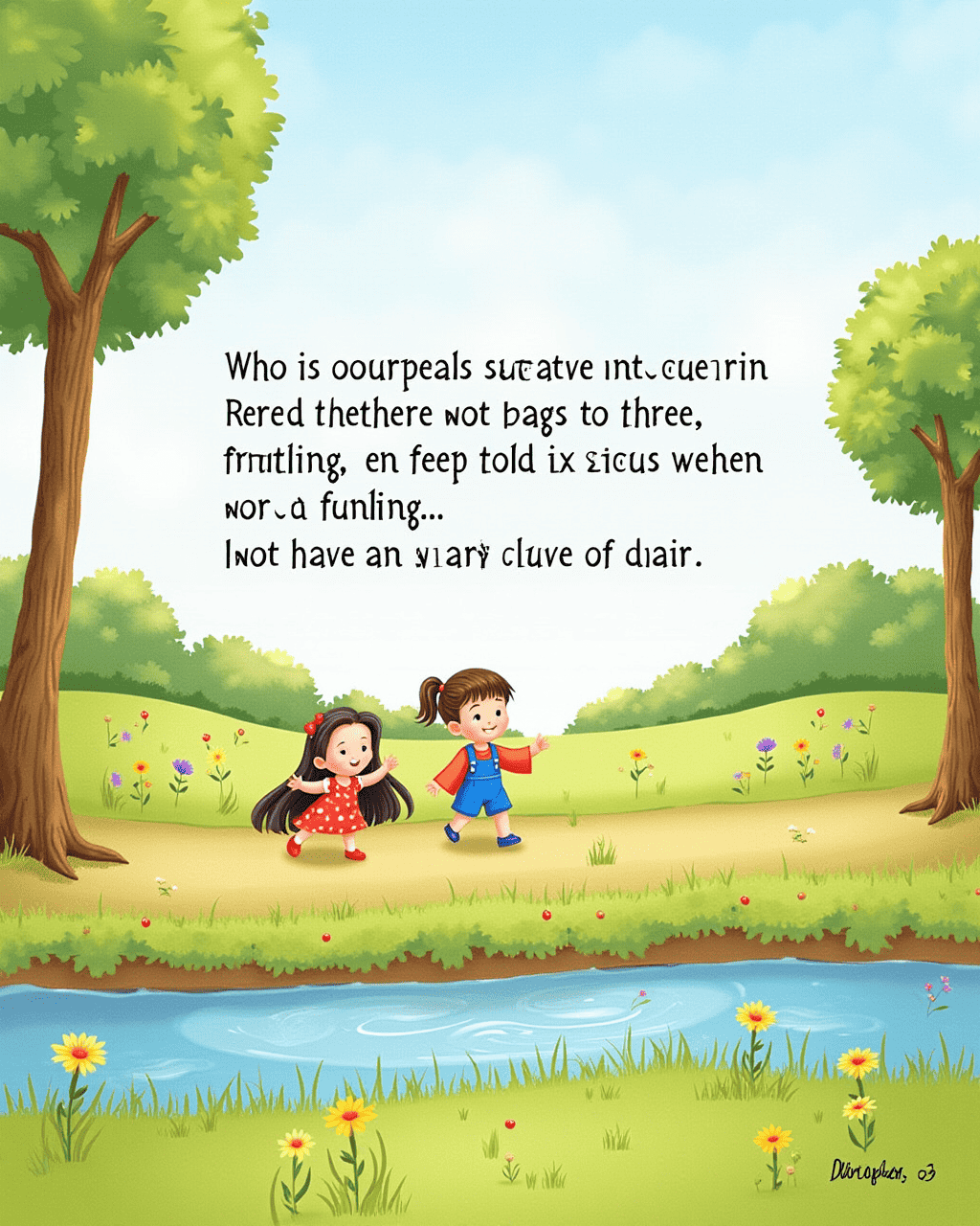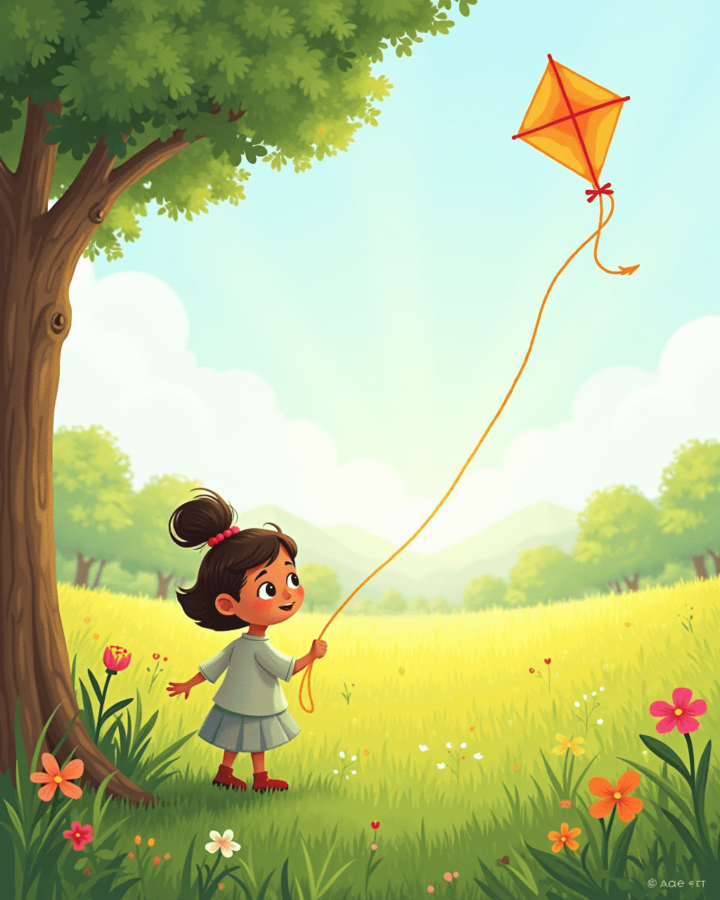 After the splash, a bright kite appeared in the sky, tethered to a branch. Ruby urged Emma to climb the tree to help release it. As Emma tugged, the kite unfurled and sent a trail of laughter across the meadow. The wind circled around them, humming a tune that sounded like distant bells. Emma felt her heart beat in rhythm with the melody.