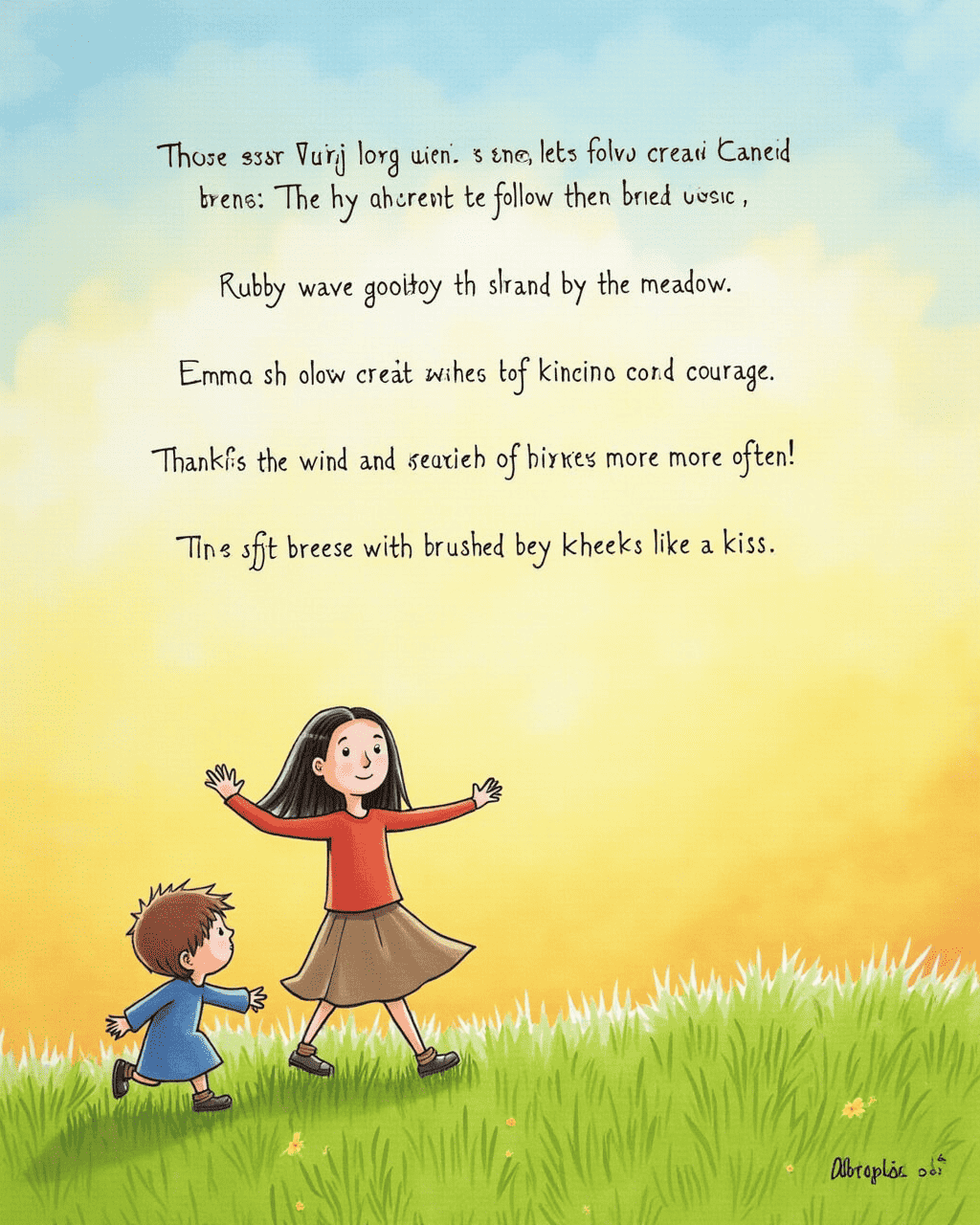 Emma felt the wind guiding her steps, carrying stories of kindness and courage. She thanked the wind and promised to listen more often. The wind answered with a soft breeze that brushed her cheeks like a kiss.